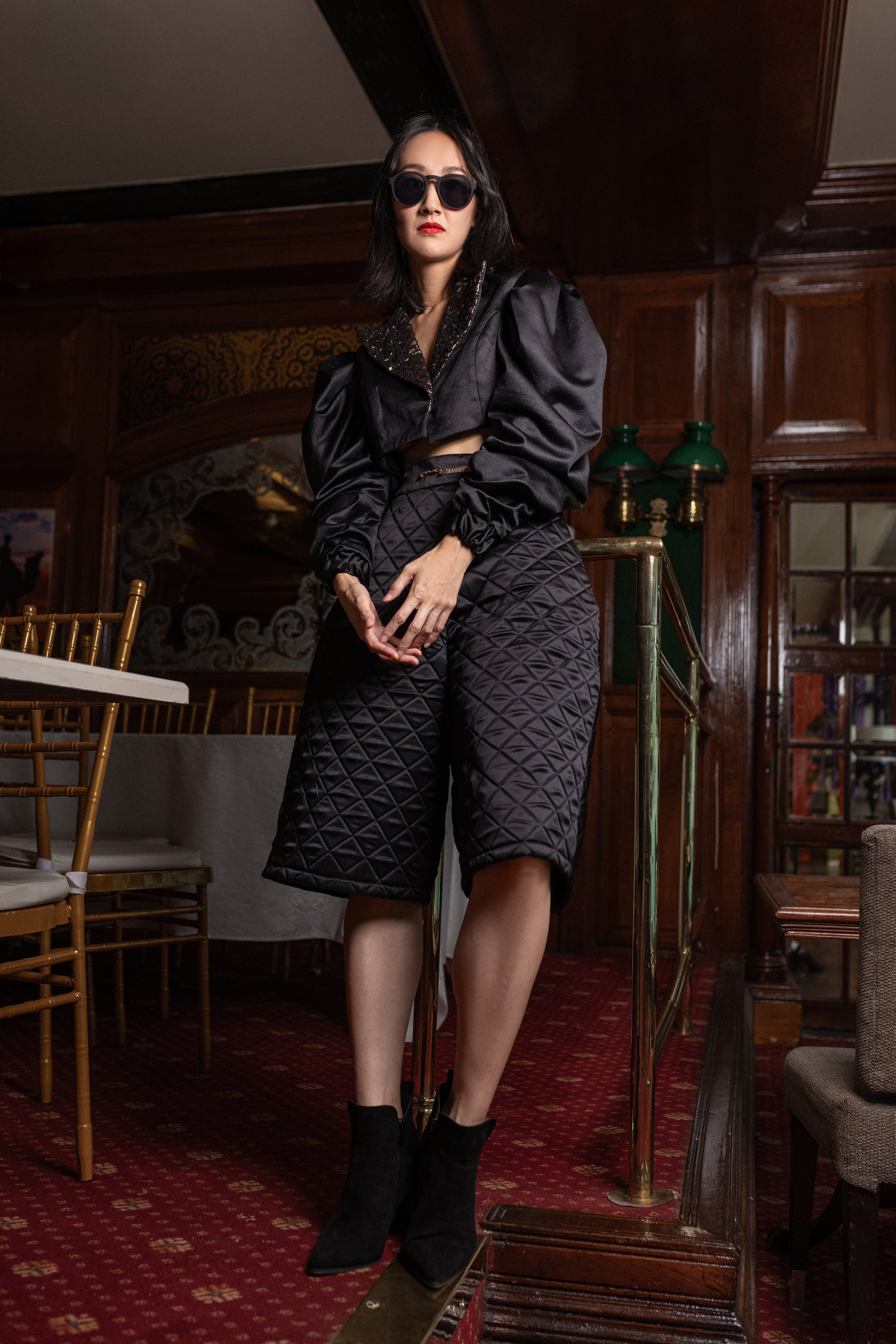 "Dark Night" Two Piece Set - Quilted Short & Crop Jacket